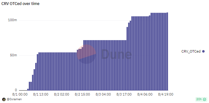 It’s not over yet. Curve founder Michael Egorov continues to sell CRV OTC in order to repay his debt. From what we know, he’s selling CRV at $0.40, there’s a six month lockup, but you can sell if CRV goes higher than $0.80. Some of the new buyers include Reserve protocol and Wintermute.